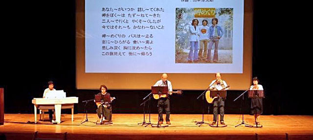 午前中は定時総会で、午後からは三塩会員の司会で記念行事です。ナルク顧問の堀田力氏の基調講演と、びわこ湖西拠点の事例紹介。続いてお楽しみのパフォーマンス・フェスタです。トップバッターはオー・ジーンズ。それから落語や安来節、二胡の演奏など、全国16拠点の芸達者な会員のパフォーマンスが披露されました。ラストは枚方拠点も参加して盆踊り。「ダンシングヒーロー」で大いに盛り上がりました。