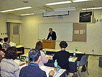 基調講演はNALC豊中・池田・箕面「わかばの会」運営委員の岡部克己さんにお願いしました。「わかばの会」日比野代表もご同席されて、会の指針をお話になりました。「社会参加の大切さと共に、会を支えている会員が生涯現役として参加できるような会づくり」を目指すとの内容でした。 岡部さんは、活動内容の特徴をパワーポイントで詳細に判りやすく説明されました。