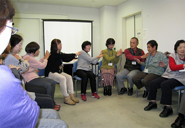 次に「だんご」サークルによる認知症予防対策ゲームが行われ、賑やかに楽しみました。ゲームは簡単にできなくても、考えながらする事が認知症予防に効果があるそうです。 あっという間に時間が過ぎ4地区についての話し合いが十分にできなかったことは残念でした。