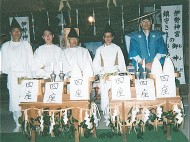 中世より続く津田春日神社宮座による秋の奉納祭りは、早朝より、今年収獲した農作物を各宮座の当家の家から裃を着て、神社まで担いで行き、奉納し神事を行います。