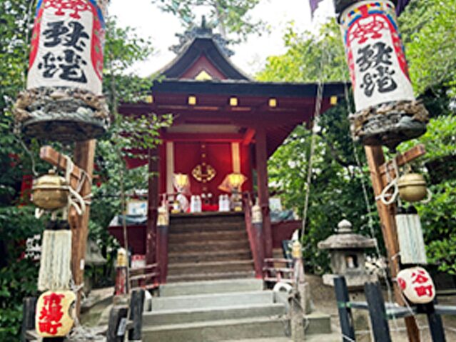 神社は立派な大提灯を早朝より各家庭から1人出て地域毎に本殿と屋根より高く掲げられる辻提灯を飾り、各家庭では玄関前に、紋入り提灯を吊して飾ります。提灯と大太鼓で賑わう提灯祭りです。
