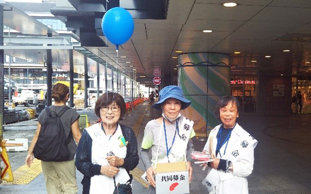 私たちは、10 月2 日(木)14 時に枚方市駅1 階中央に集合し数人単位で3ヵ所に分かれ、大きな声で道行く人々にお願いをしました。