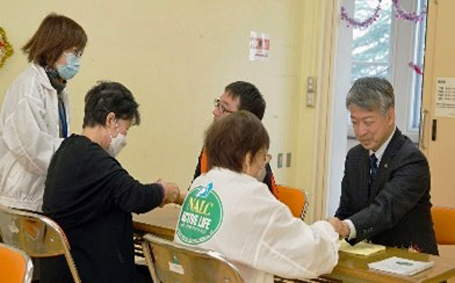 例年は10月に行われていましたが、今年は会場の都合により12月7日(日)に開催されました。39団体が参加し、ナルク「天の川クラブ」はハンドマッサージとクリスマス歌体操で参加しました。ハンドマッサージには63名の方の来場があり、伏見枚方市長も笑顔でマッサージを受けられていました。