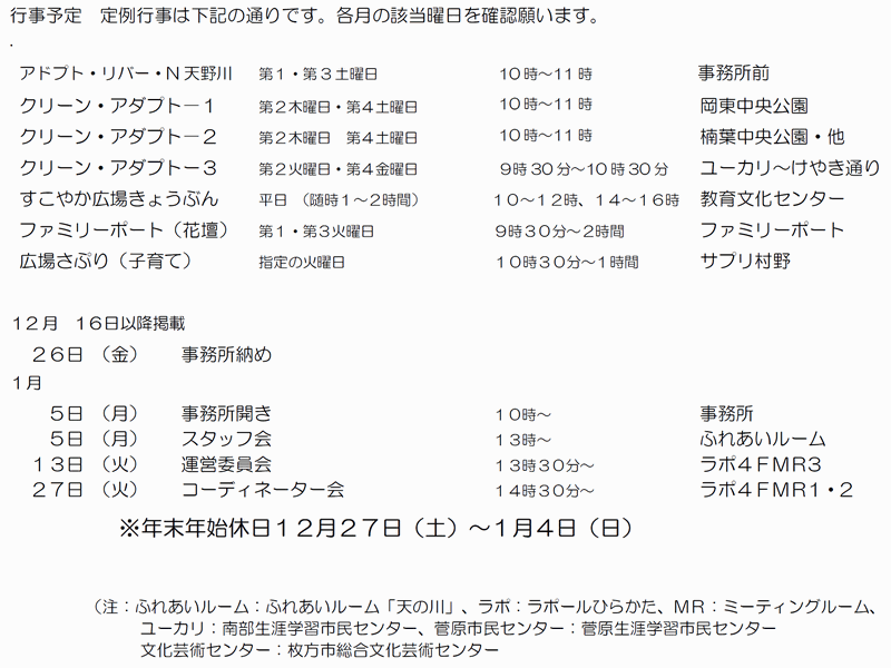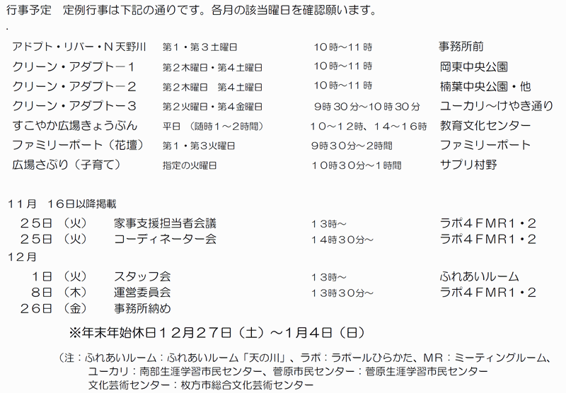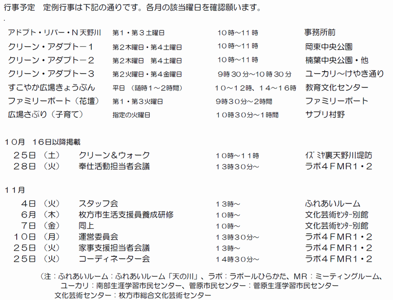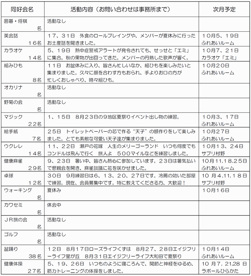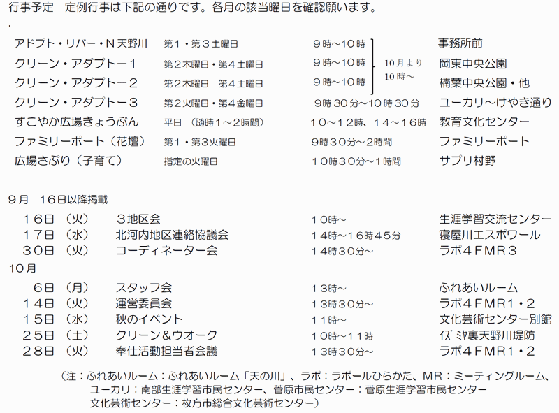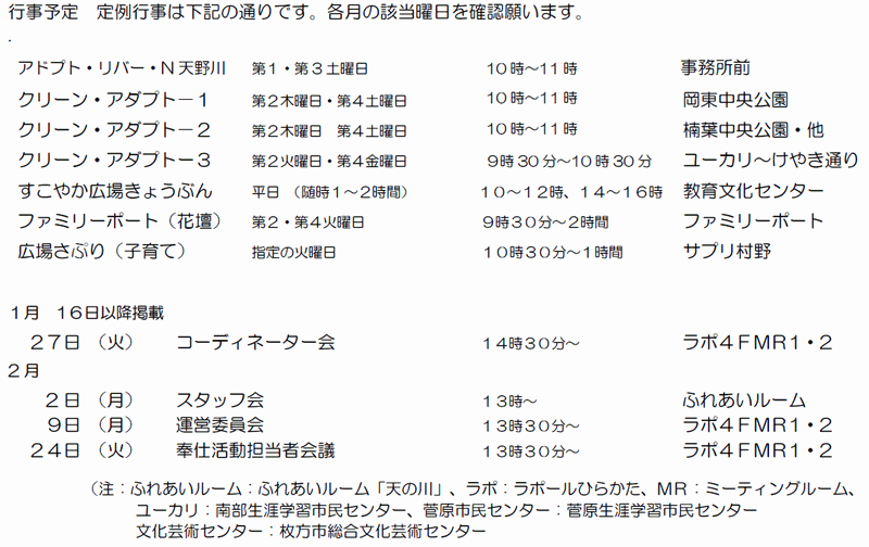 ※「行事予定」及び「同好会活動の予定」は、下記にそれぞれの2ヶ月分を掲載しています。 クリックで全画面表示します。